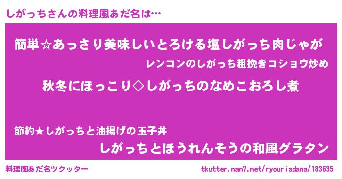 | 胡散臭い通販商品みたいなあだ名 | 『来世でも幸せになれる健康食品…その名も「しがっち」』 |