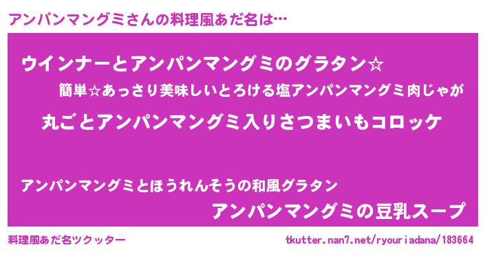| 意味不明あだ名 | 『住所不定無職アンパンマングミ(65歳)』 |