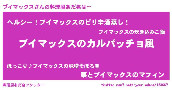| 意味不明あだ名 | 『住所不定無職ブイマックス(14歳)』 |
