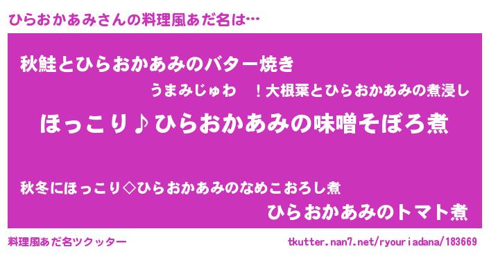 | ヘコむあだ名 | 『ひらもー』『ひらおかあみ(爆)』 |