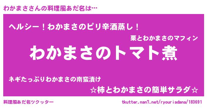 | ヘコむあだ名 | 『わかもー』『酢こんぶ』『わかを』 |