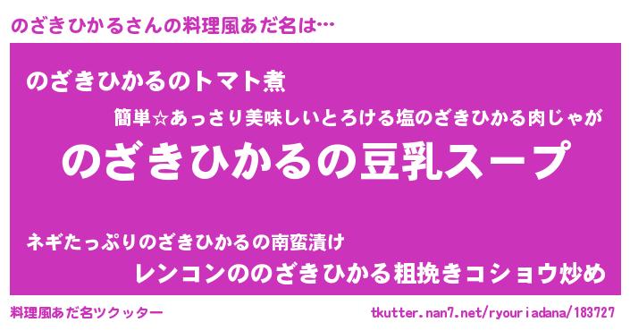| 胡散臭い通販商品みたいなあだ名 | 『信頼と実績のサプリメント…その名も「のざきひかる」』 |