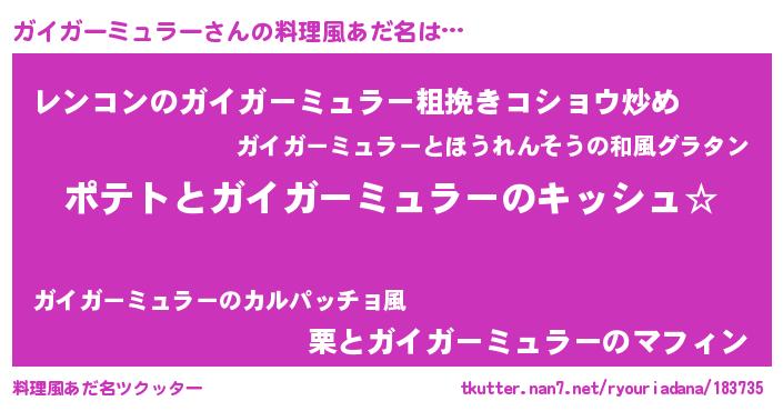 | 意味不明あだ名 | 『とにかく怪しいガイガーミュラー』 |