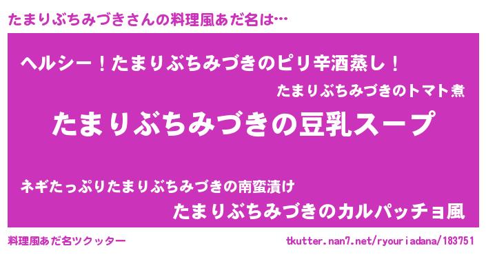 | 胡散臭い通販商品みたいなあだ名 | 『信頼と実績のサプリメント…その名も「たまりぶちみづき」』 |
