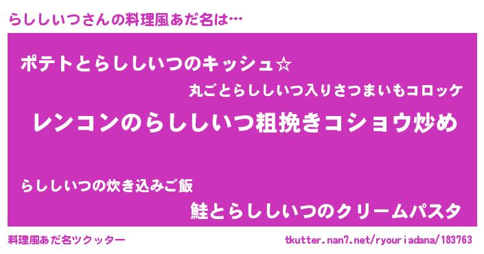 | 意味不明あだ名 | 『自称らししいつ』『ペロリンらししいつ』 |
