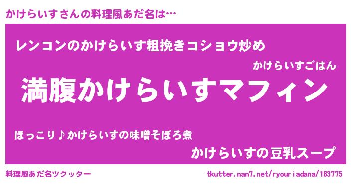 | 男性向けラノベタイトル風あだ名 | 『かけらいすという概念が存在しない退屈な世界 』 |