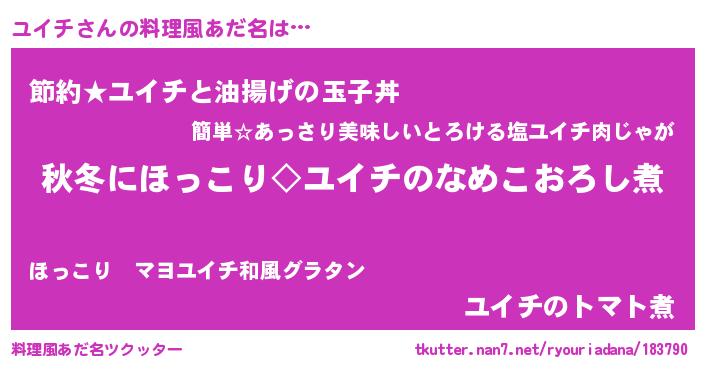 | 意味不明あだ名 | 『ペロリンユイチ』『永久保存ユイチ』 |