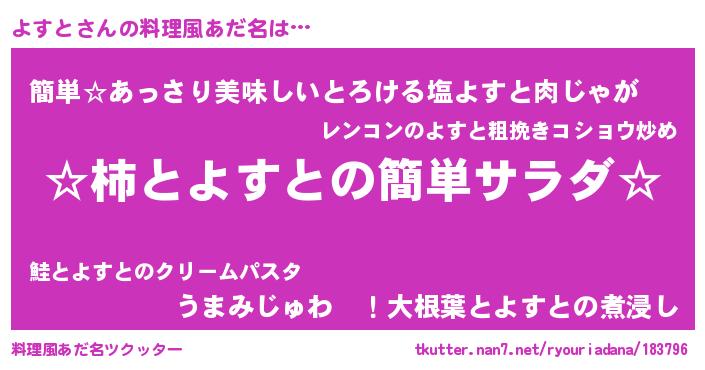 | 胡散臭い通販商品みたいなあだ名 | 『絶対に幸福をもたらす健康食品…その名も「よすと」』 |