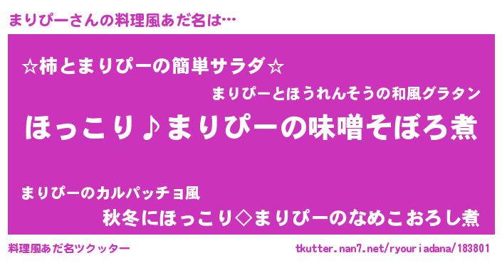 | ヒーロー風カッコイイあだ名 | 『スーパーマリピー』『仮面マリダー』 |