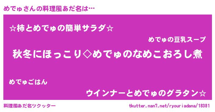 | 意味不明あだ名 | 『めでゅフォーエバー』『ペロリンめでゅ』 |