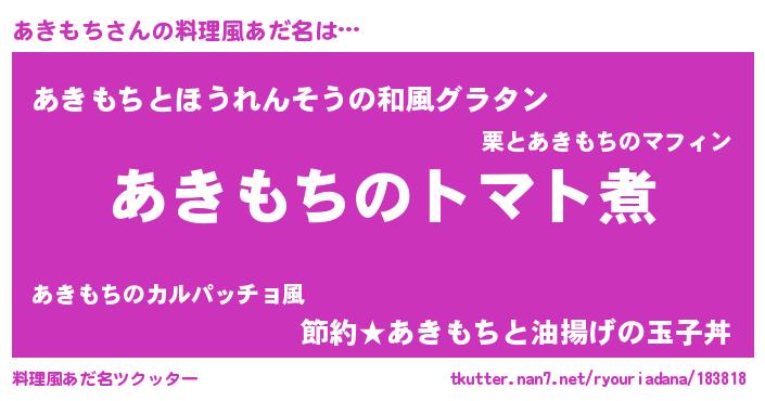 | ヘコむあだ名 | 『あきもー』『なまこ酢』『あきっぺ』 |