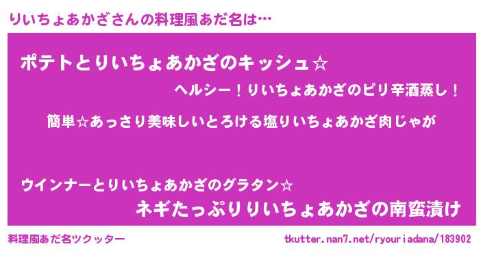 | 意味不明あだ名 | 『永久保存りいちょあかざ』 |