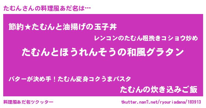 | 女子向けラノベタイトル風あだ名 | 『たむんの玉の輿計画!』『たむん恋絵巻』 |
