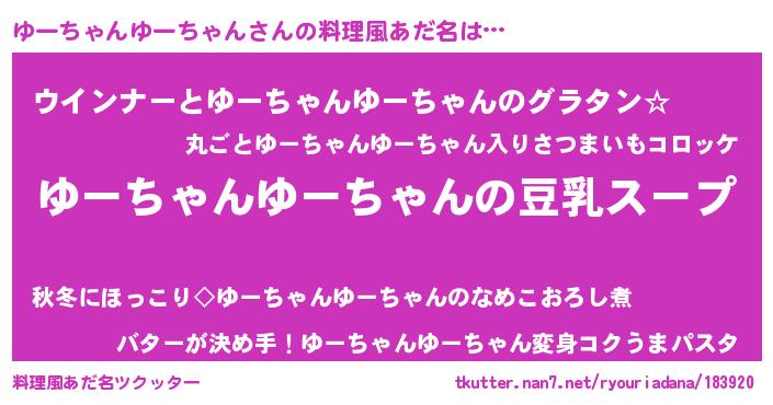 | 女子向けラノベタイトル風あだ名 | 『ゆーちゃんゆーちゃんは平凡を望む』 |