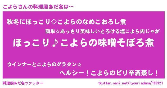 | ヘコむあだ名 | 『こよもー』『こよら(笑)』 |