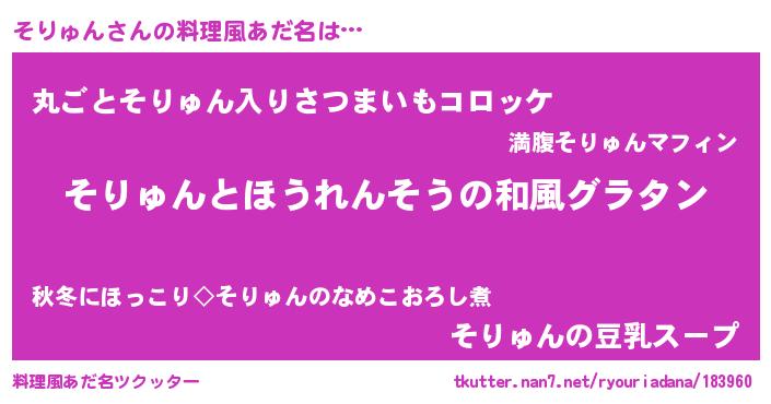 | 女子向けラノベタイトル風あだ名 | 『そりゅんの玉の輿計画!』 |