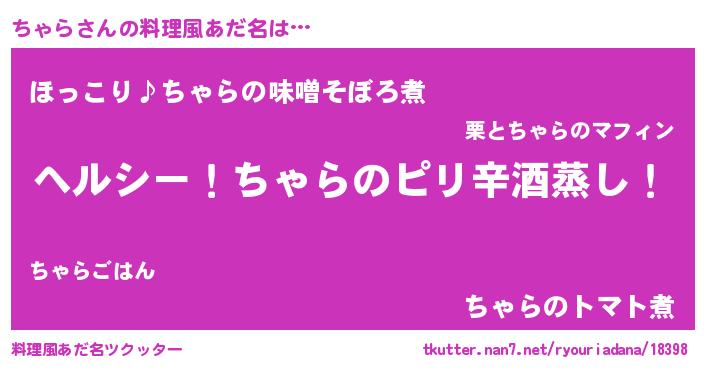 | 男性向けラノベタイトル風あだ名 | 『Re:ちゃらから始める異世界生活』 |