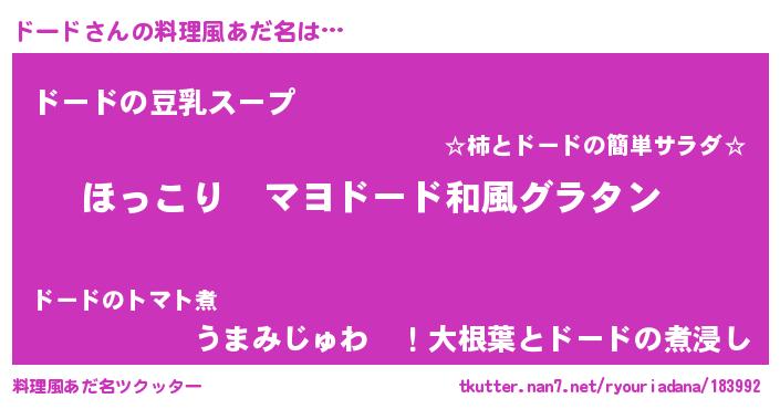 | 意味不明あだ名 | 『住所不定無職ドード(4歳)』 |