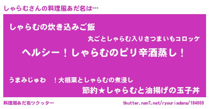 | 胡散臭い通販商品みたいなあだ名 | 『テレビで話題のアガリクス…その名も「しゃらむ」』 |