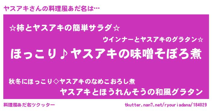 | ヒーロー風カッコイイあだ名 | 『スーパーヤスアキ』『仮面ヤスダー』 |