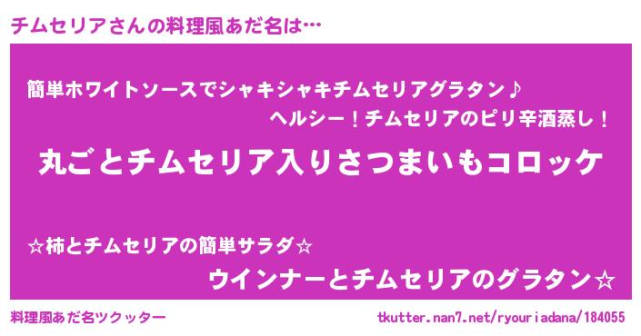 | 意味不明あだ名 | 『住所不定無職チムセリア(65歳)』 |