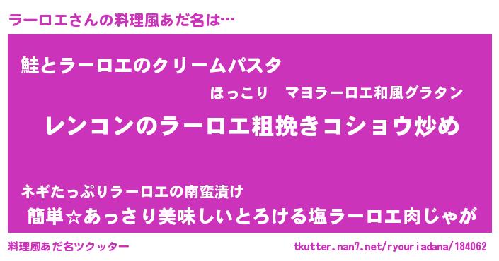 | ヘコむあだ名 | 『ラーロエ(小並感)』『ラーもー』 |