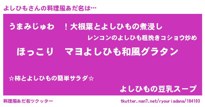 | 意味不明あだ名 | 『住所不定無職よしひも(95歳)』 |