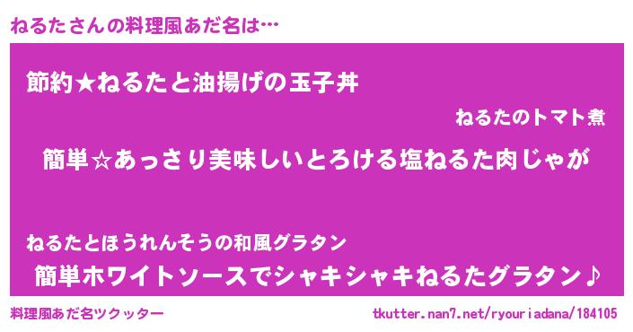 | ヘコむあだ名 | 『ねるた(笑)』『ねるにゅー』 |