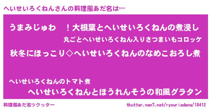 | 男性向けラノベタイトル風あだ名 | 『へいせいろくねんに滅ぼされるだけの簡単なお仕事です』 |