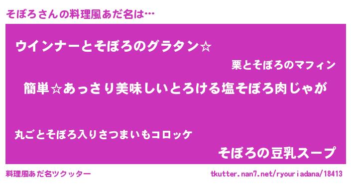 | ヒーロー風カッコイイあだ名 | 『ネオソボロ』『ウルトラそぼろマン』 |