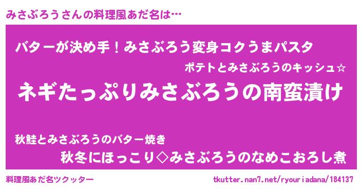 | ヒーロー風カッコイイあだ名 | 『スーパーミサブロウ』『暗黒騎士ミサ』 |