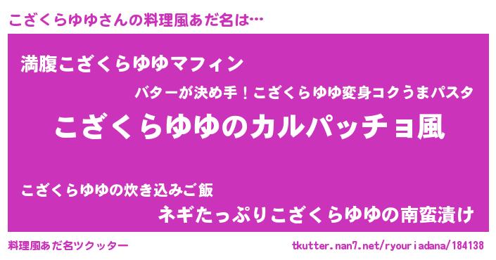 | ヘコむあだ名 | 『こざくらゆゆ(遠い目)』『こざもー』 |