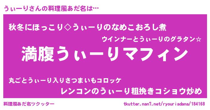 | ヘコむあだ名 | 『うぃーり(震え声)』『なまこ酢』 |