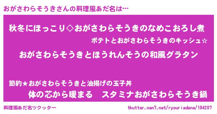 | 欧米人風あだ名 | 『トリンドルおがさわらそうき』 |