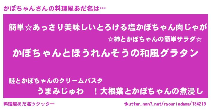| 意味不明あだ名 | 『ニラ科かぼちゃん属』 |