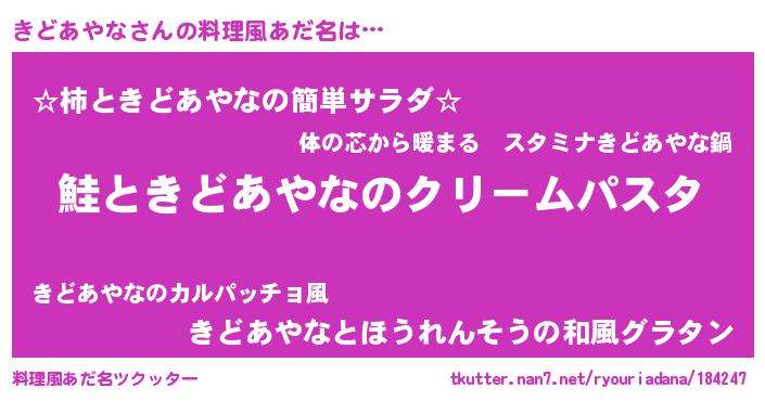 | ヘコむあだ名 | 『レバニラ』『きどあやな(笑)』 |