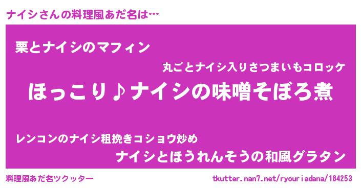 | 可愛いあだ名 | 『ナんナん』『ナイぷりん』 |
