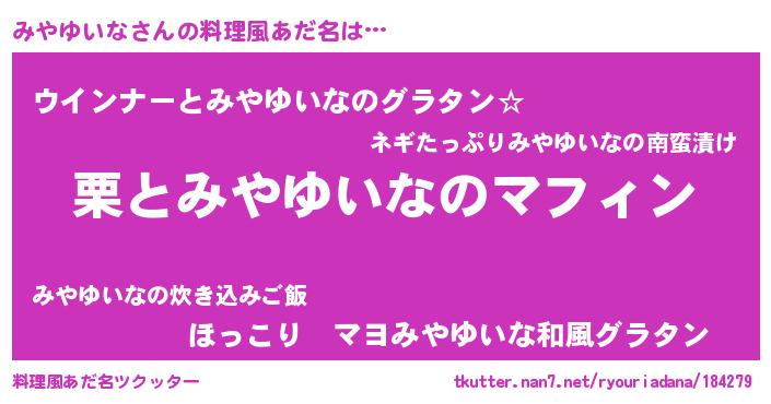 | 恥ずかしいあだ名 | 『みやっちょ』『プリティーみやゆいな』 |