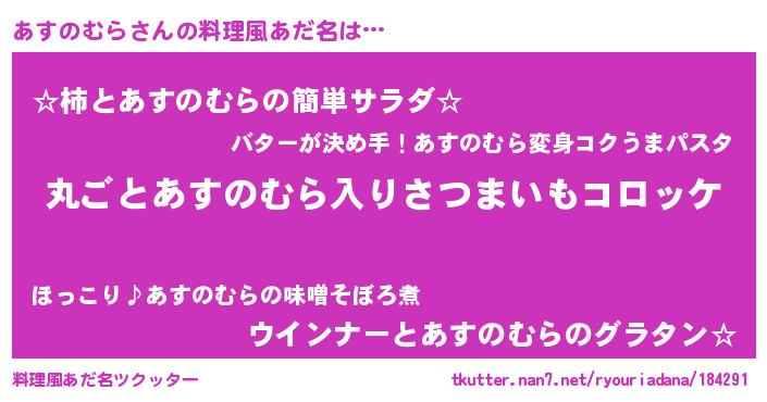 | 意味不明あだ名 | 『住所不定無職あすのむら(5歳)』 |