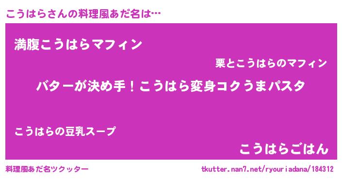 | ヘコむあだ名 | 『こうはら(笑)』『こうっぺ』 |