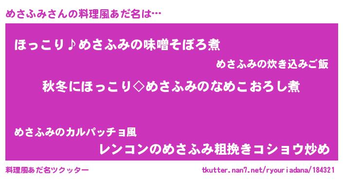 | 意味不明あだ名 | 『ペロリンめさふみ』『自称めさふみ』 |
