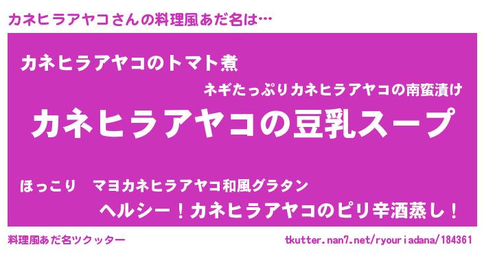 | 意味不明あだ名 | 『とにかく怪しいカネヒラアヤコ』 |
