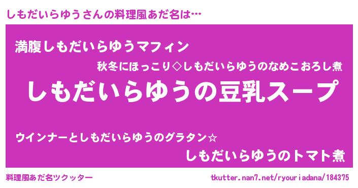 | 胡散臭い通販商品みたいなあだ名 | 『信頼と実績のペンダント…その名も「しもだいらゆう」』 |