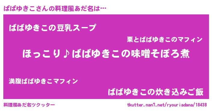 | 男性向けラノベタイトル風あだ名 | 『ばばゆきこの憂鬱』 |
