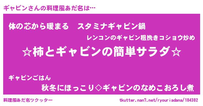 | 男性向けラノベタイトル風あだ名 | 『緋弾のギャビン』『ギャビンスレイヤー』 |