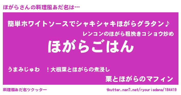 意味不明あだ名 | 『しいたけ科ほがら属』『自称ほがら』 |