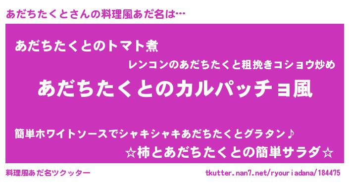 | ヘコむあだ名 | 『あだっぺ』『あだちたくと(小並感)』 |