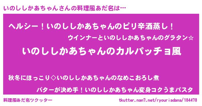 | 意味不明あだ名 | 『住所不定無職いのししかあちゃん(14歳)』 |