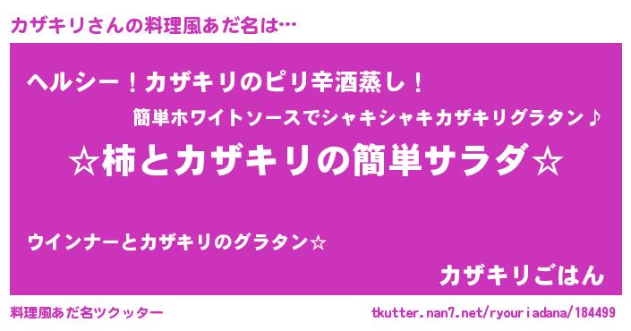 | 意味不明あだ名 | 『自称カザキリ』『ニラ科カザキリ属』 |