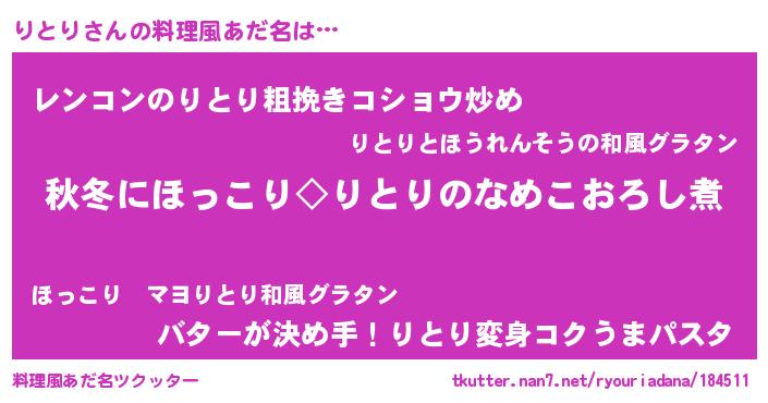 | 女子向けラノベタイトル風あだ名 | 『横柄りとりと宰相陛下』『りとり恋絵巻』 |